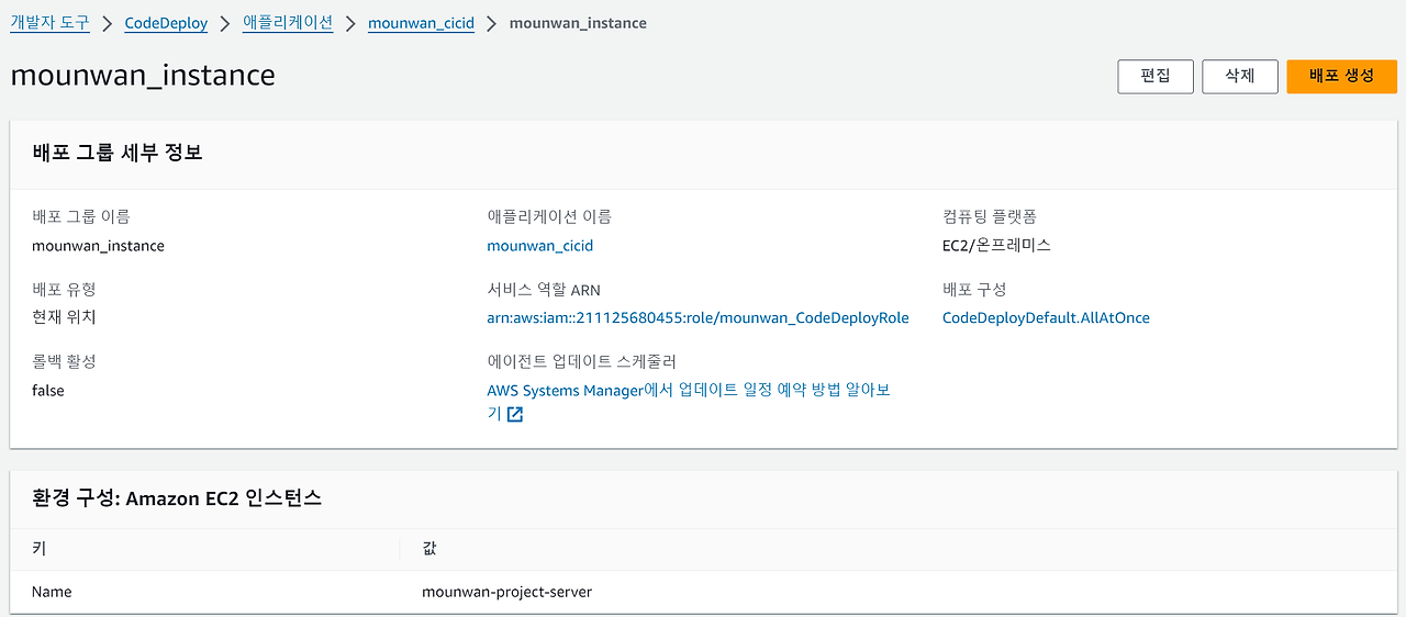 ✔️CodeDeploy 생성