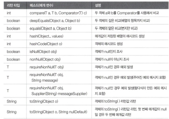 위 표처럼 Objects클래스에는 매개변수를 가지는 정적메소드들이 있다.