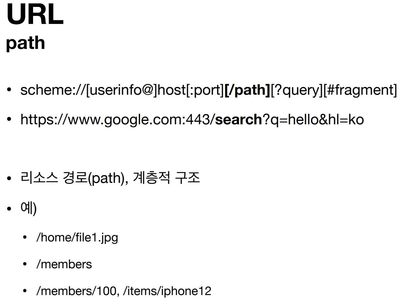 path는 해당 리소스 있는 경로이다. 보통 계층적 구조로 되있다.